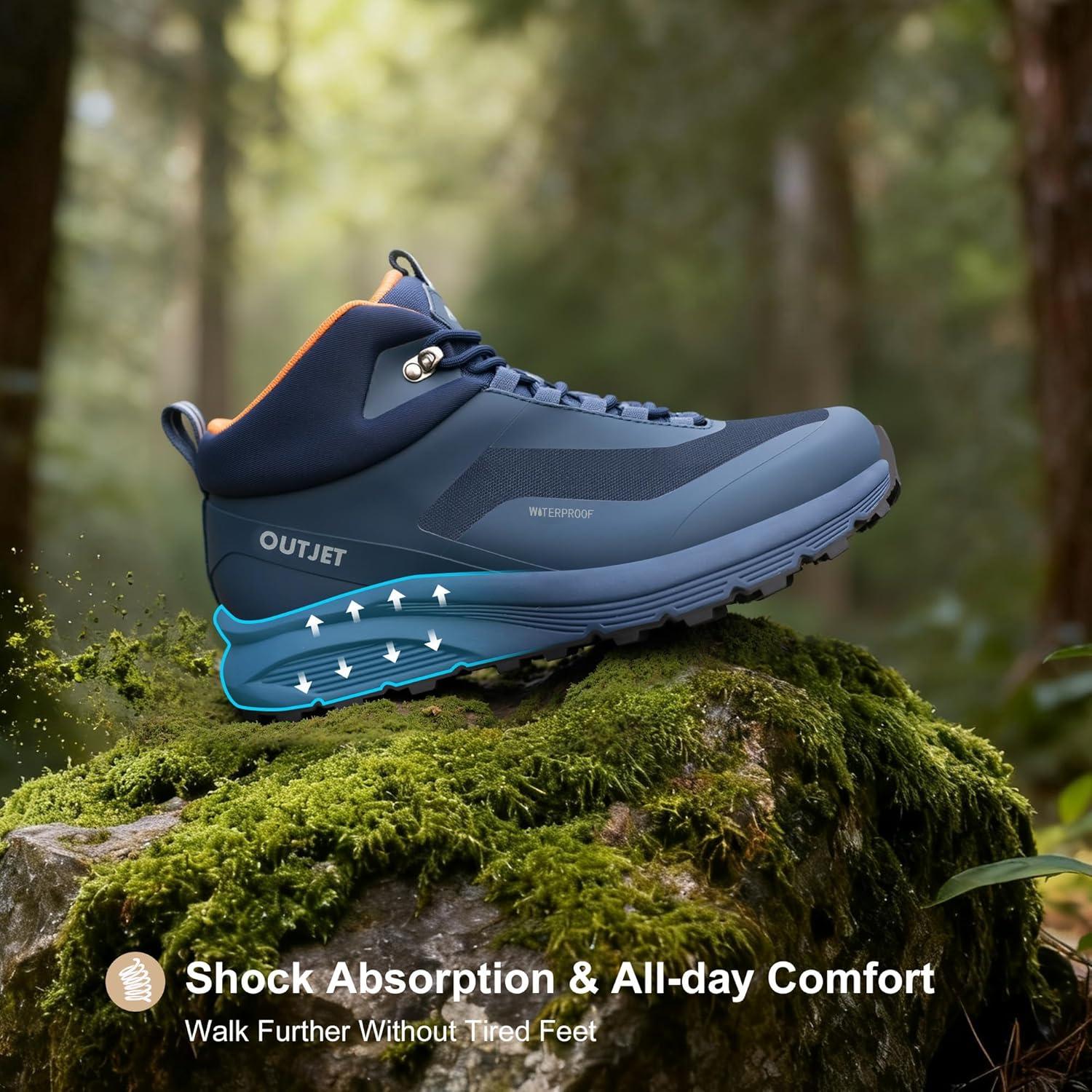 Men’s Waterproof Hiking Boots Lightweight Comfortable Breathable Outdoor All-Terrain Trekking Ankle Boots(Blue)