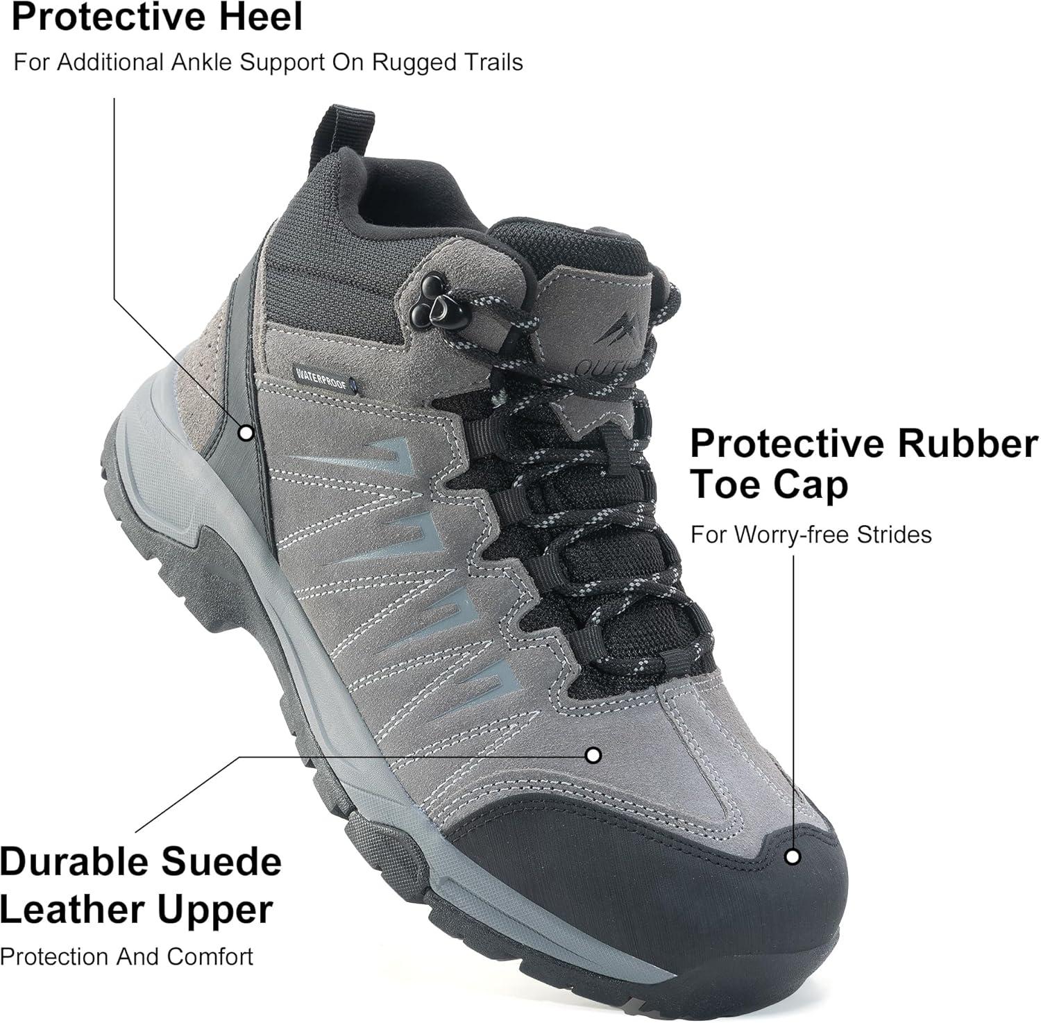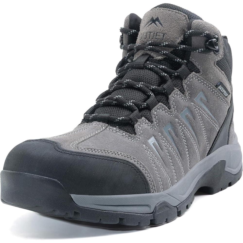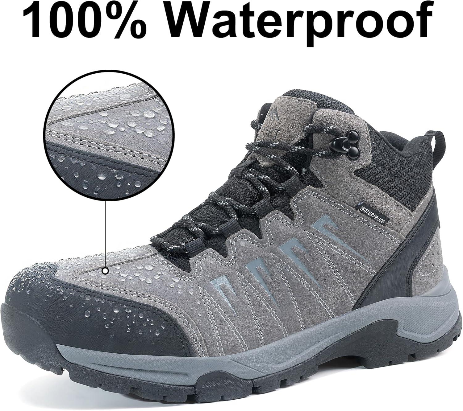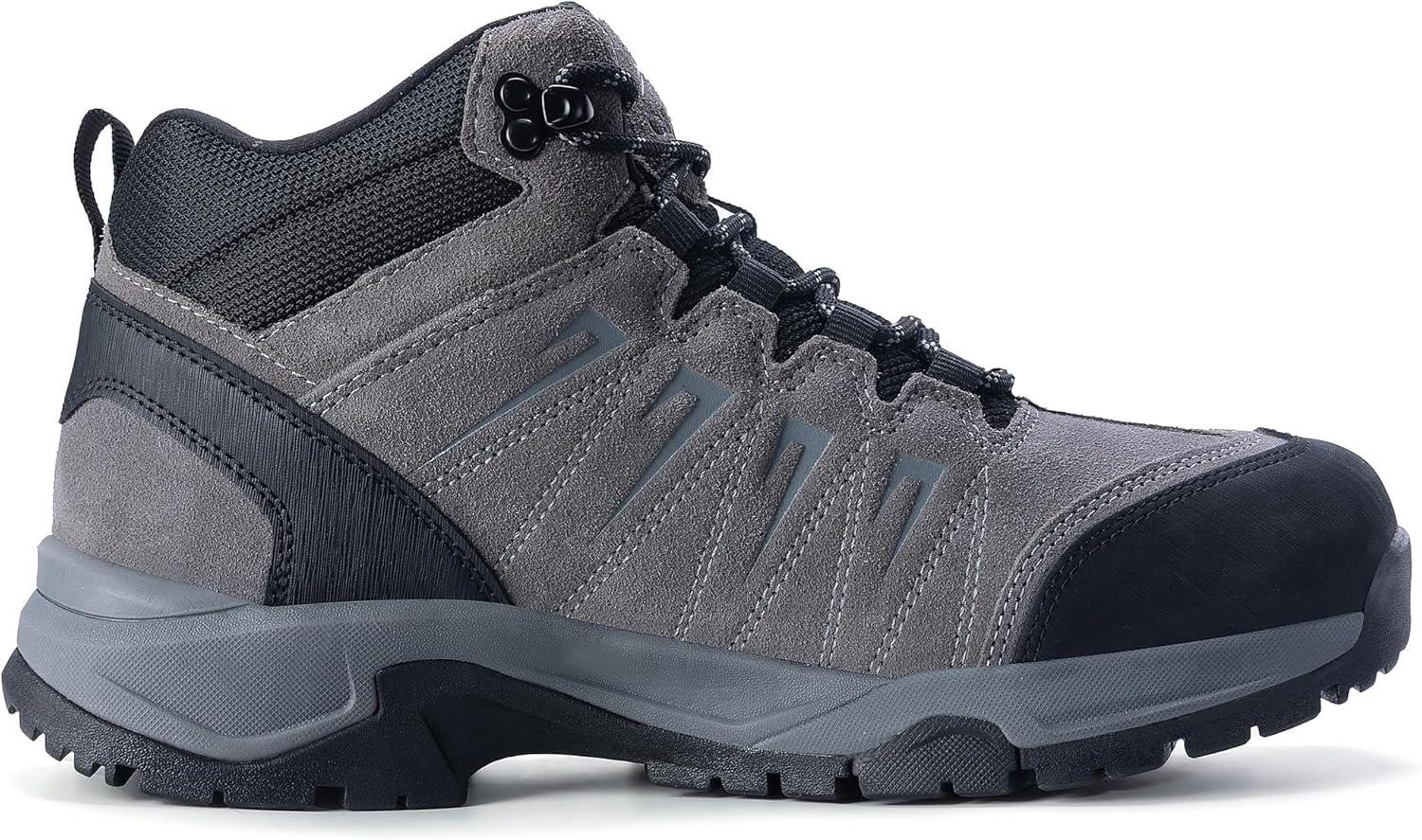 Men’s Waterproof Hiking Boots Lightweight Comfortable Leather Mid Ankle Outdoor Trekking Boot(Grey)