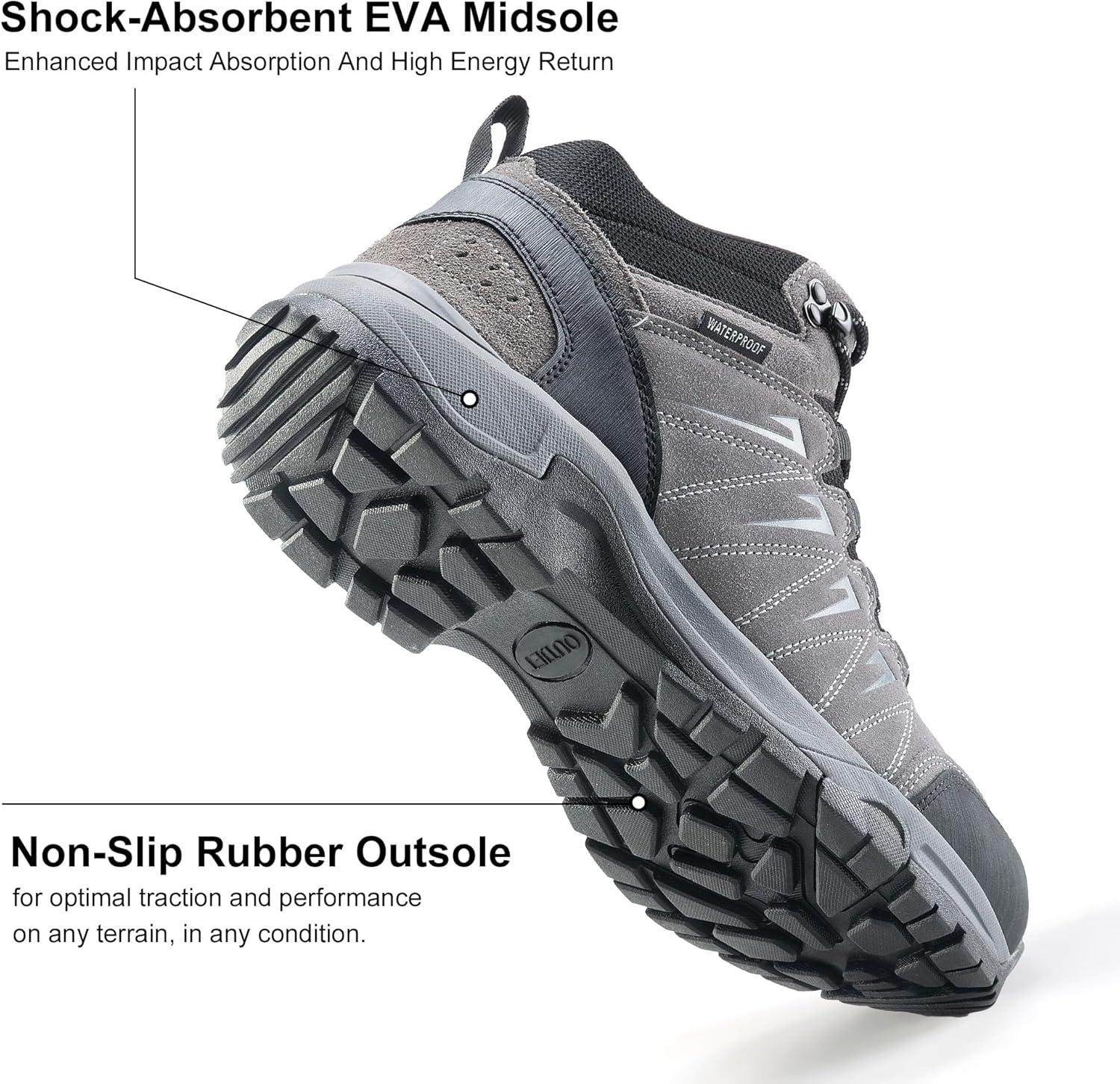 Men’s Waterproof Hiking Boots Lightweight Comfortable Leather Mid Ankle Outdoor Trekking Boot