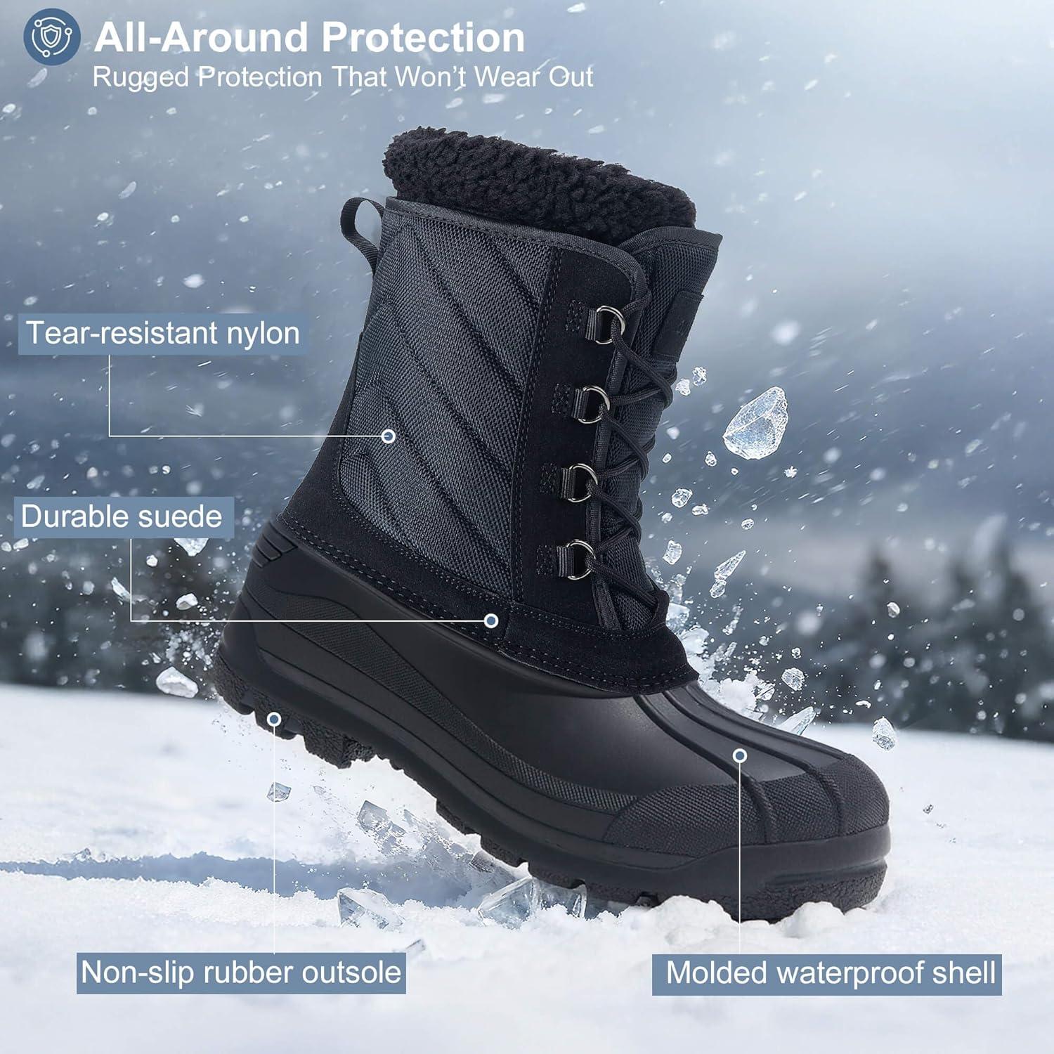 Men's Winter Waterproof Shell Snow Boots Insulated Warm Fur Lined Hiking Boot