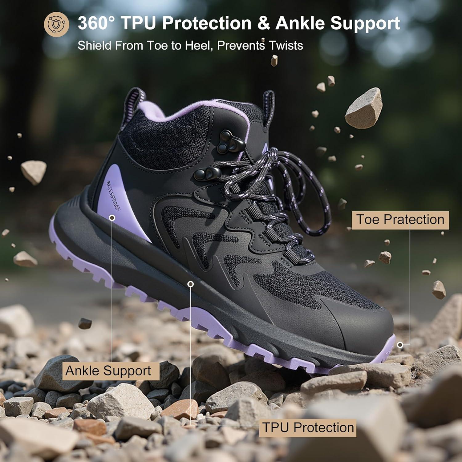 Women’s Hiking Boots Waterproof and Lightweight, Comfortable Walking Outdoor Boots(Black)